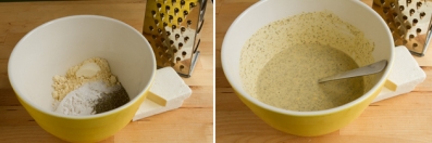 Add water and olive oil. Stir until fully incorporated. Allow to sit for 5 minutes.