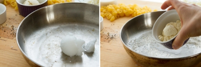 Melt oil in a large saucepan over medium-high heat. Remove from heat and stir in flour, salt and pepper.
