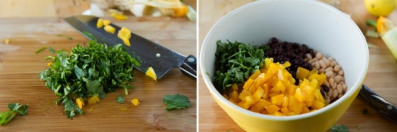 Place salad ingredients in a large bowl.