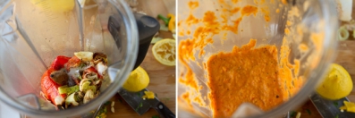 Add vegetables to a blender with lemon juice, oil, salt and cayenne.