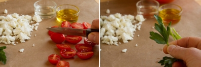 Slice the tomatoes and pick the parsley leaves. Chop them with a large knife, roughly is fine.