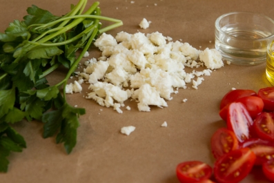 Break apart the feta cheese into large crumbles.