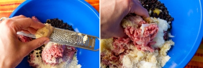 To make the kebabs, drop all ingredients into a large-sized bowl and mix with your hands until incorporated.