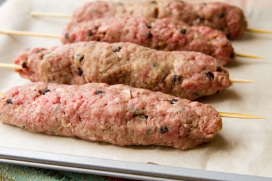 Spiced beef kabobs with currants, cumin and cinnamon served up with a side of fresh goat yogurt tzatziki.