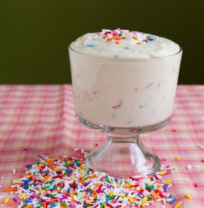 All of the ingredients of white cake made into an irresistible fruit dip, sprinkles included.