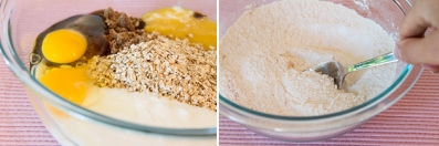 In a separate bowl, stir together flour, baking soda, baking powder and cinnamon.