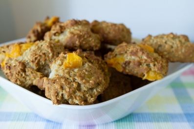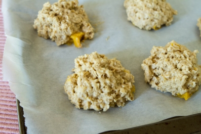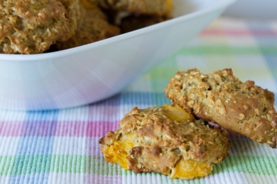Take your bowl of oatmeal on the go with these deliciously simple peach muffin tops.
