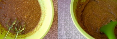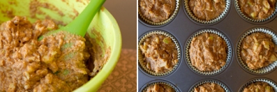 Add dry ingredients to wet ingredients and mix until incorporated. Don’t mix too much or you’ll have rock-hard muffins.