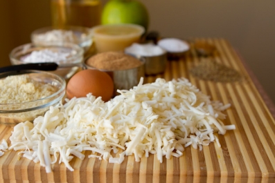 A slice of cheddar cheese over top a wedge of my Mom’s homemade apple pie reminds me of Fall. Instead of spending hours in the kitchen making an apple pie, you can achieve the same great taste, aroma and satisfaction by baking a batch of these cheddar apple muffins made with a full brick of Happy Days Dairies Cheddar Cheese. They’re to die for!
