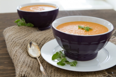 Transfer the soup to the jug of your blender and blend, on high, for 30 seconds, or until soup is smooth. Transfer to bowls and serve.