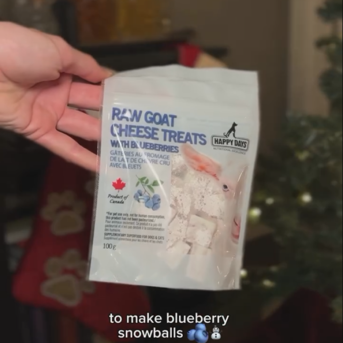 - Sprinkle crumbled goat cheese with blueberry “snow” on top
