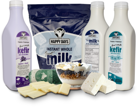 La laiterie de chèvres Happy Days a été fondée en 1993. Nous sommes la référence des produits laitiers caprins dans l’Ouest canadien. Nous sommes fiers de maintenir nos activités au niveau local, afin de garantir des produits laitiers caprins de la plus grande fraîcheur et de la plus haute qualité.