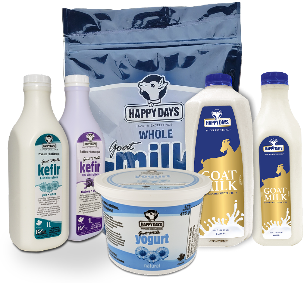 Tous nos produits sont fabriqués à partir de lait de chèvre canadien et sont produits en Colombie-Britannique et en Alberta.