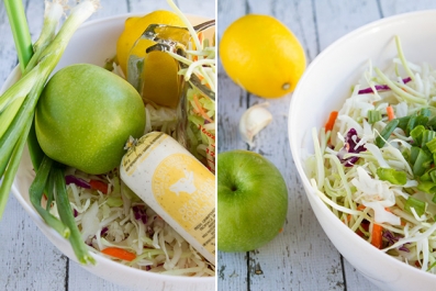 Use Happy Days Soft Okanagan Goat Cheese as the base of a creamy coleslaw dressing instead of yogurt or mayonnaise. This coleslaw is loaded with fresh flavors – from the lemon pepper sauce to the fresh, crisp apples.