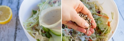 Pour the dressing over the salad and serve immediately.