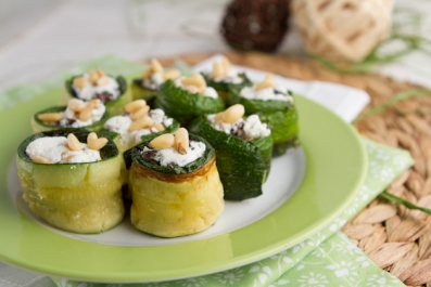 Zucchini Rolls with Garlic, Parsley and soft Okanagan Goat Cheese