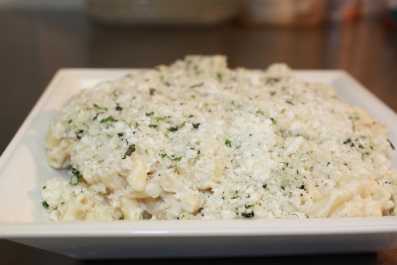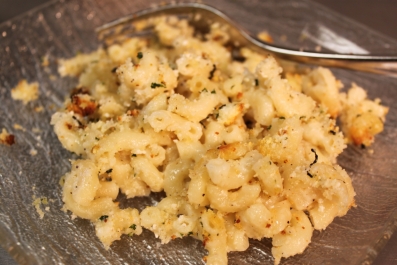 In a small bowl mix together the Cheddar, Panko, Butter and Parsley. Spread this over the macaroni and cheese.